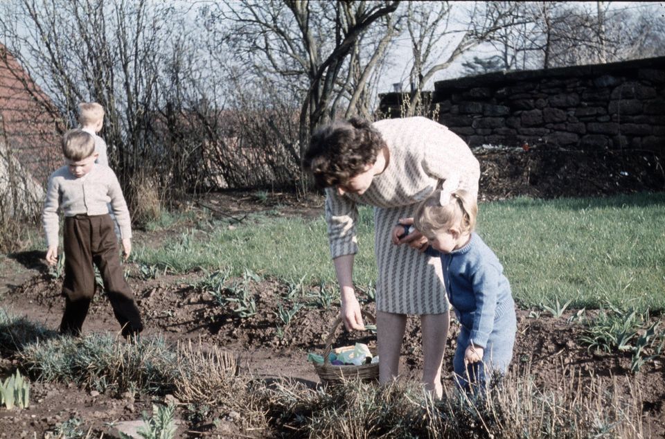 Auf Ostereiersuche, im Hintergrund sieht man die Bahnschienen die von Ramstein nach Landstuhl führen